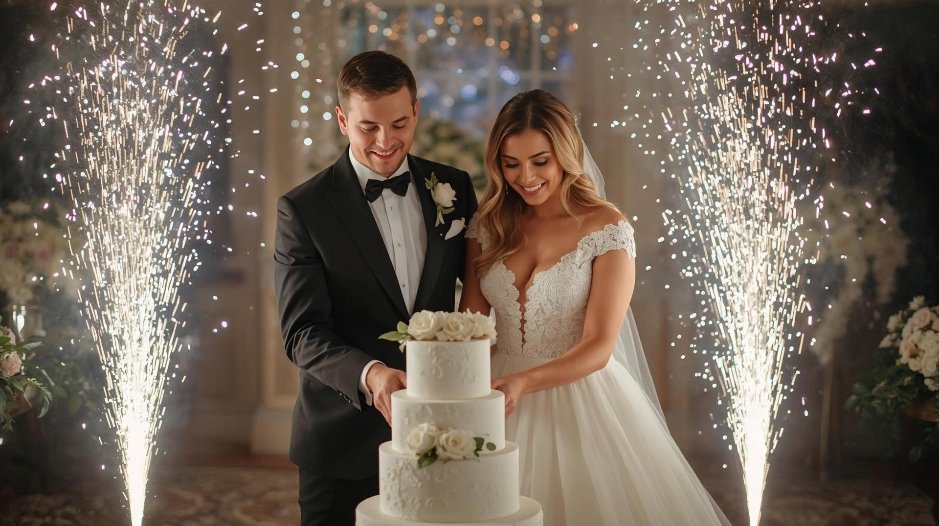 Spettacolari fontane fredde color oro, totalmente sicure e senza rischi. Perfette per il taglio della torta, il primo ballo o altri momenti speciali, aggiungono un effetto scenografico unico e rendono ancora più magica la vostra festa.